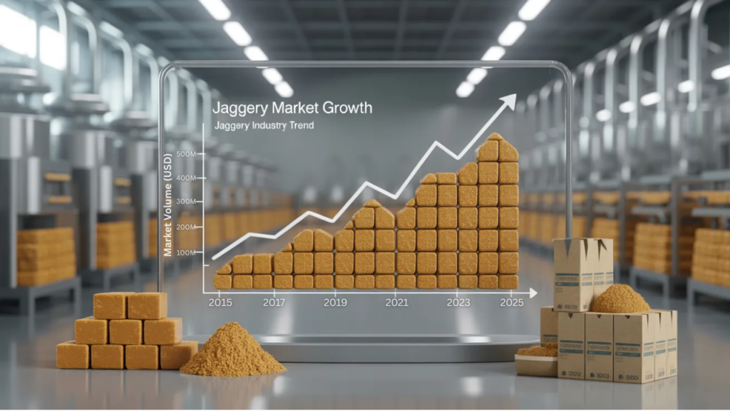 The jaggery industry is no longer limited to traditional markets. A product that was previously only used locally is now in high demand in export markets, health brands, and retail stores.