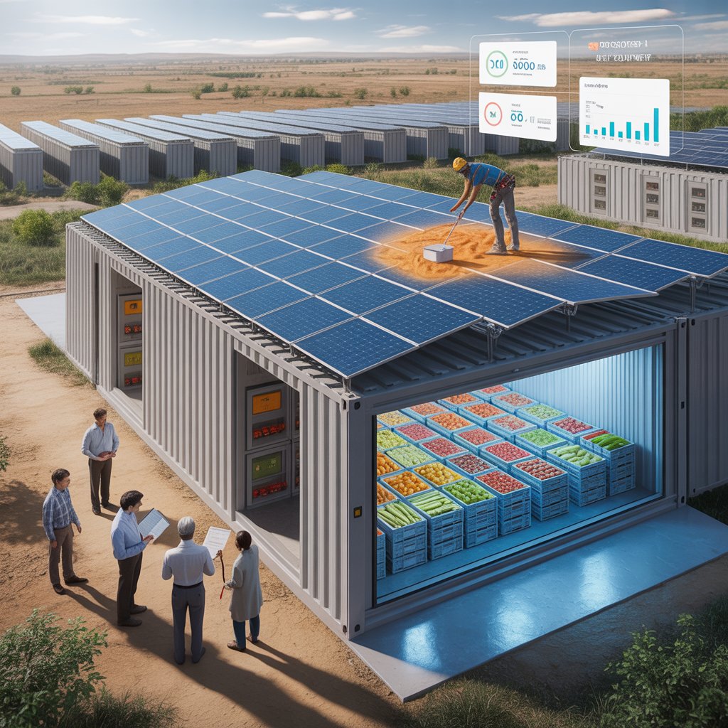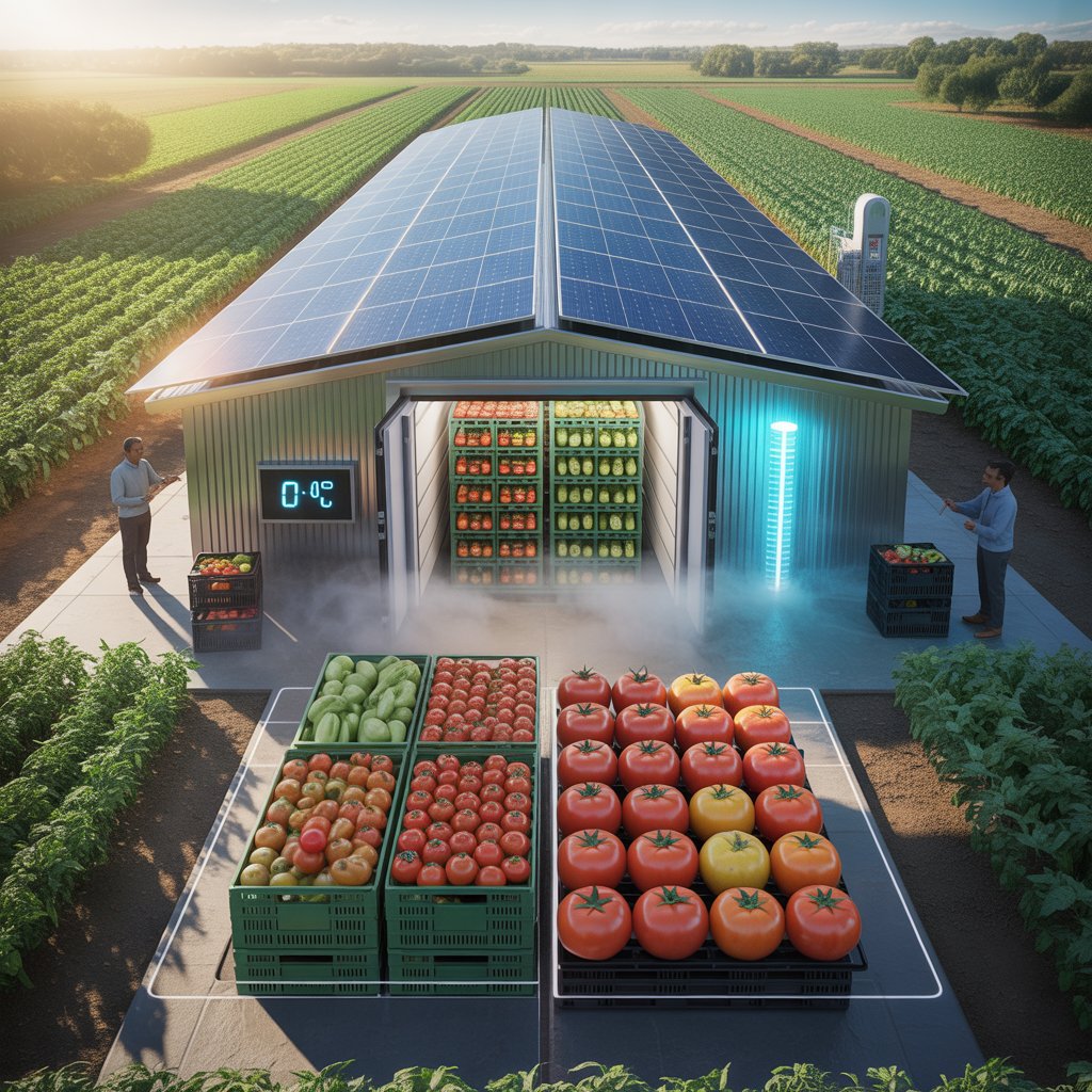 Cold storage directly addresses the source of the problem by allowing for on-site preservation. Instead of relying on unreliable grid power or diesel generators, these systems use abundant solar energy to keep fruits and vegetables at optimal storage temperatures, which are typically between 0 and 4 degrees Celsius. This significantly extends shelf life while preserving nutritional value. For example, when tomatoes are stored at room temperature, vitamin C levels drop by nearly 30% per week, whereas controlled cooling significantly slows nutrient degradation. Solar cold storage preserves produce at the farm gate, reducing emergency transportation to distant markets, fuel consumption, and associated emissions. A mid-sized 50-tonne solar cold storage unit can prevent 10-15 tonnes of produce waste and reduce CO₂ emissions by over 100 tonnes per year. These reductions are comparable to significant carbon sequestration benefits, demonstrating the technology’s environmental impact.